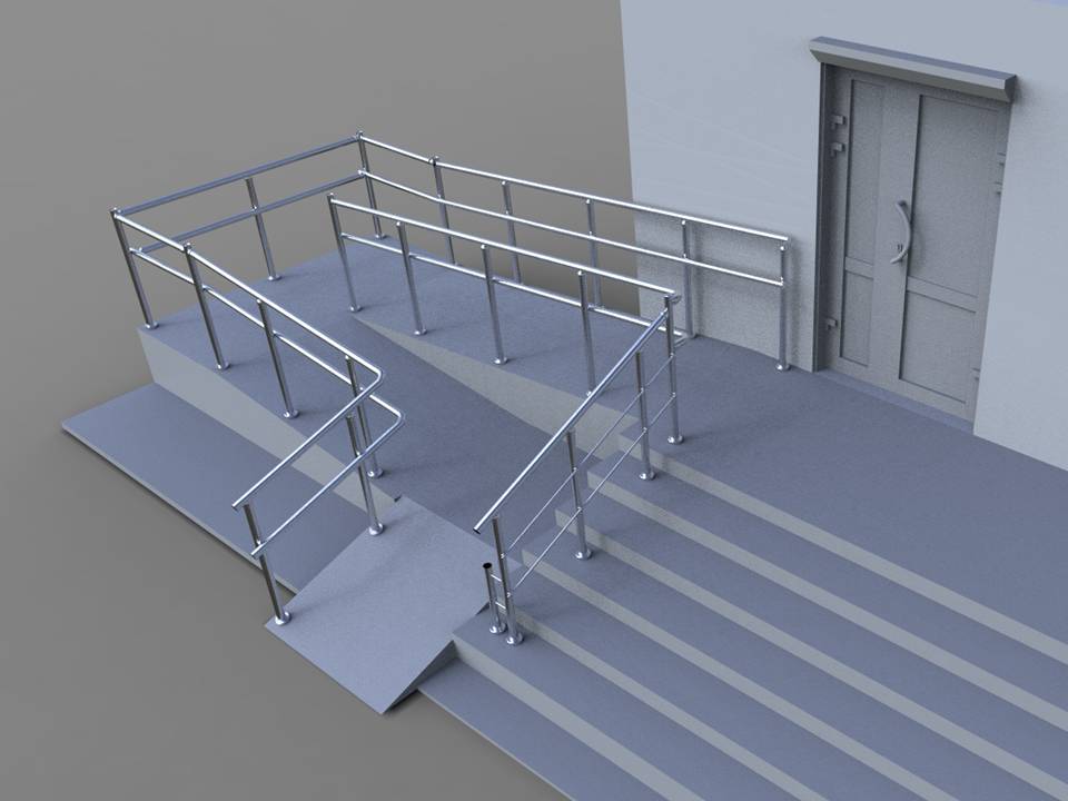 Для пандусов: если пандус имеет подъём более более 15 см и длину пролёта более 180 см, то перила должны быть установлены в обязательном порядке. При этом, перила должны быть длиннее дорожки минимум на 30 см. Высота ограждения для взрослых должна иметь два уровня – 60 и 80 см, для детских - 50 см. В нижней части пролета также устанавливается ограждение – бортик или бордюр, для предотвращения выкатывания коляски за пределы пандуса.