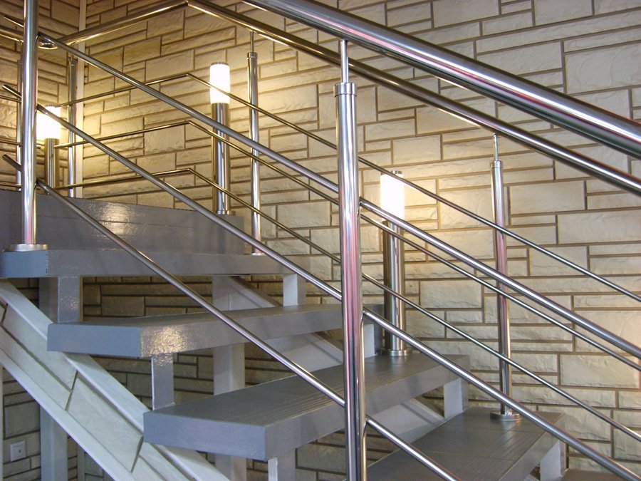Для внутренних работ можно использовать любые типы металла и не такую тщательную обработку. Допустимы сложные кованые орнаменты, наличие множества мелких декоративных деталей. Красиво смотрится отделка металла деревом. Нержавеющие конструкции в помещении также выглядят оригинально.