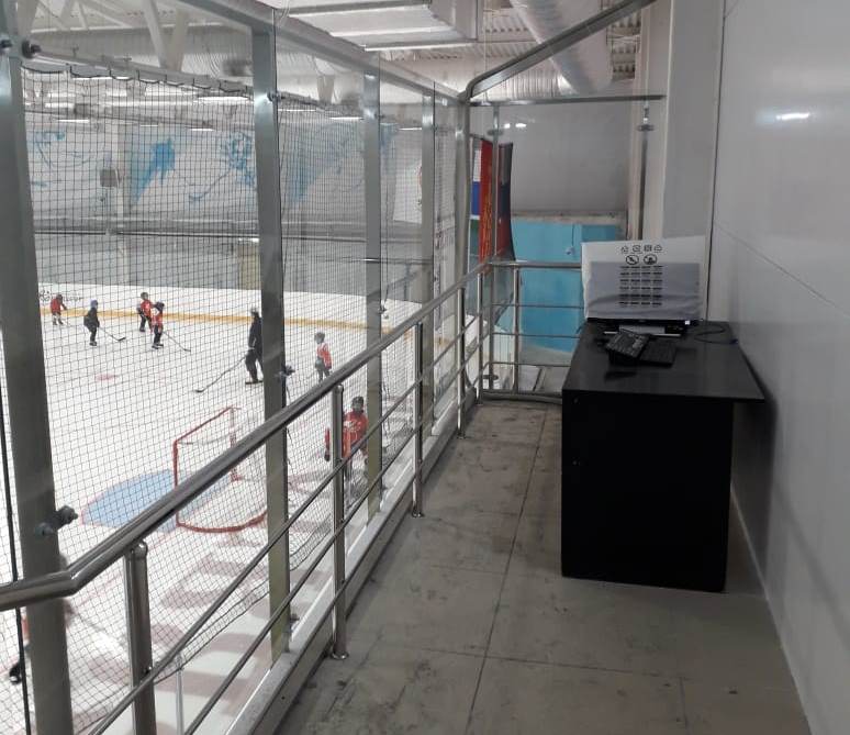 Мы изготовили и выполнили монтаж ограждений из нержавеющей стали по всему периметру второго этажа для ледовой арены в г. Красноуральск.