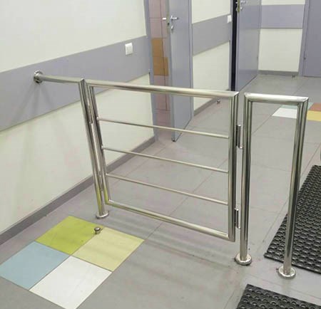 Функциональность и практичность ограждений из нержавеющей стали дает возможность устанавливать их в помещениях общего пользования. Калитки устанавливаются на объектах, где ограничивается доступ посетителей, например, аэропортах, супермаркетах, на вокзалах, а также в госучреждениях.