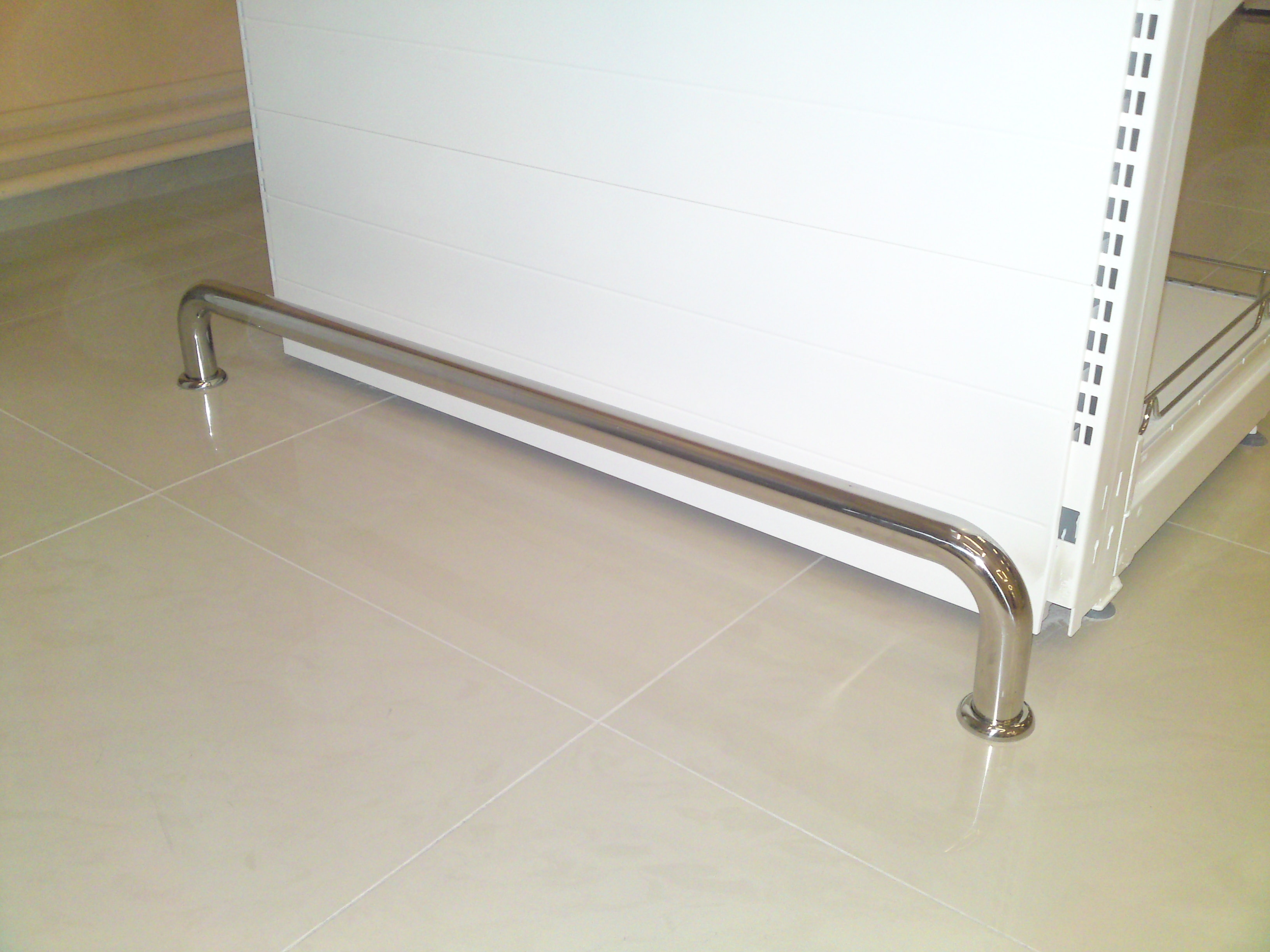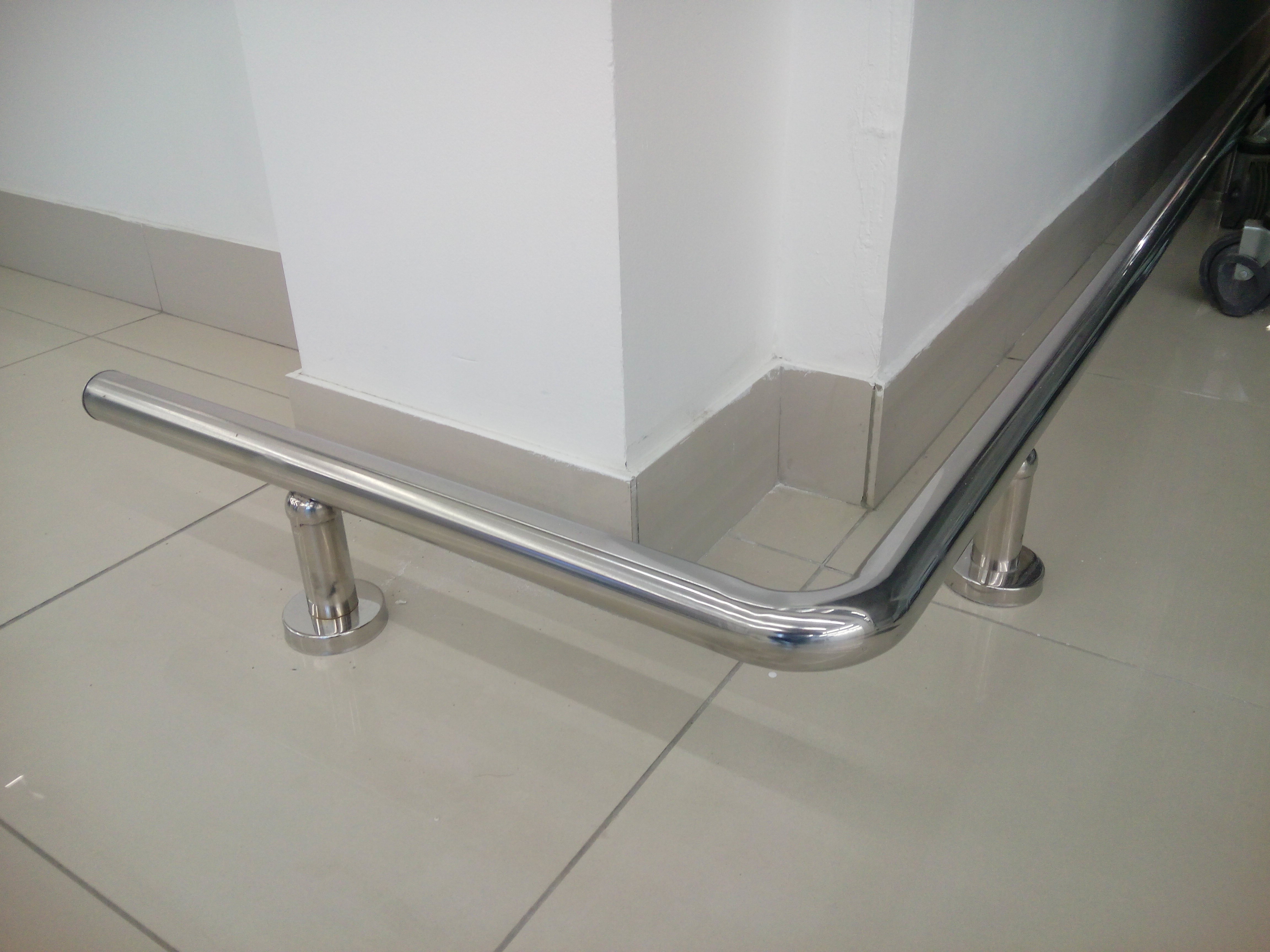 Поток посетителей в торгово-развлекательных центрах, гипермаркетах требует защиты для стен и пола от повреждений. Для этих целей предназначены отбойники из нержавеющей стали. Их используют в торговых залах для предотвращения повреждений стен от продуктовых тележек, колясок или погрузчиков, доставляющих в зал большое количество товаров.