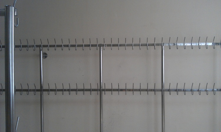 - Крючки (прут из нержавеющей стали 8 мм (верхний рад), 4 -5 мм (нижний ряд)).