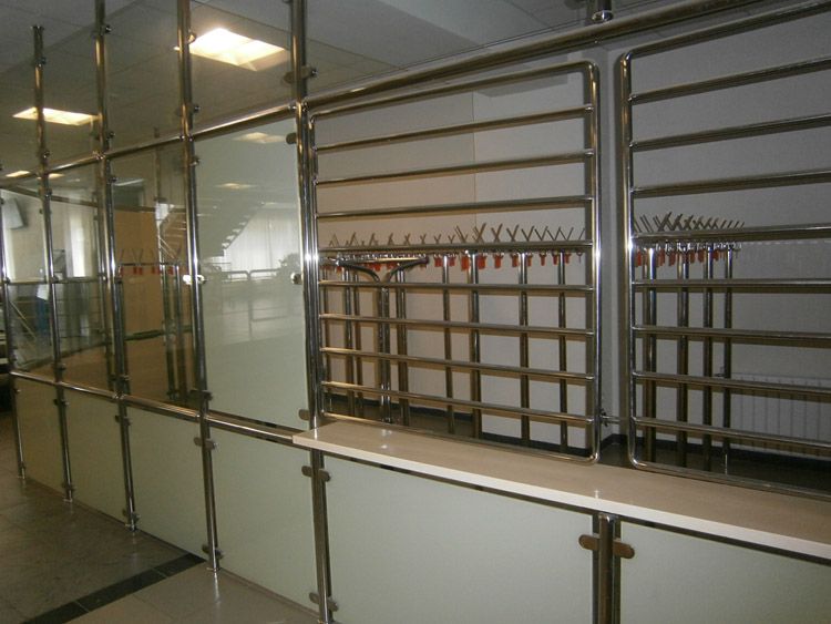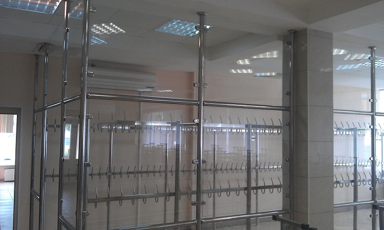 Гардеробное оборудование собирается при помощи сварки, при возможности стойки бетонируются в пол, что придает надежность и долговечность конструкции.Используемые материалы: