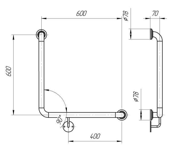 - Форма. Поручни могут быть различной формы, глубины посадки, но не менее 300 мм. Параметры определяются от целевого назначения, нагрузки и состояния больного.