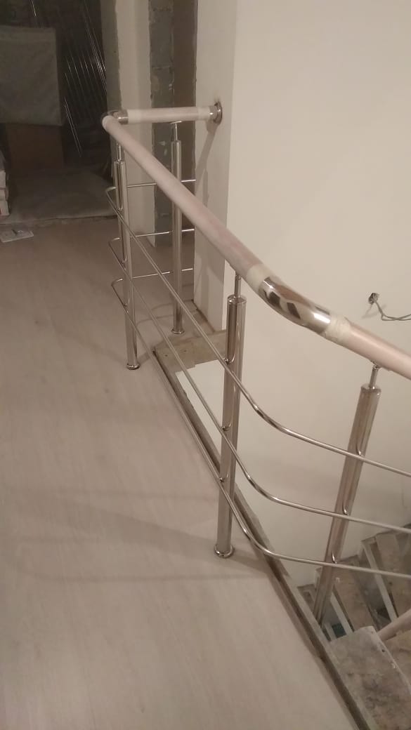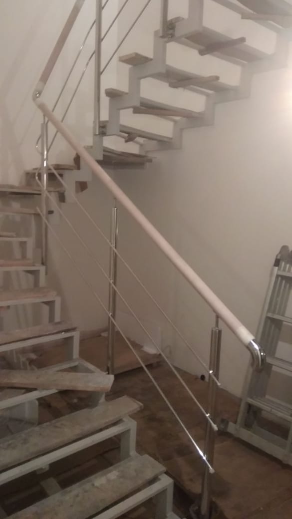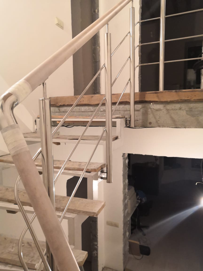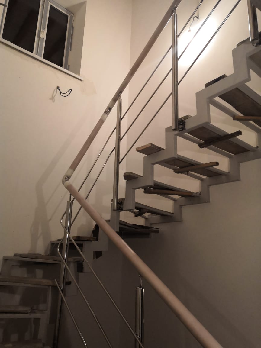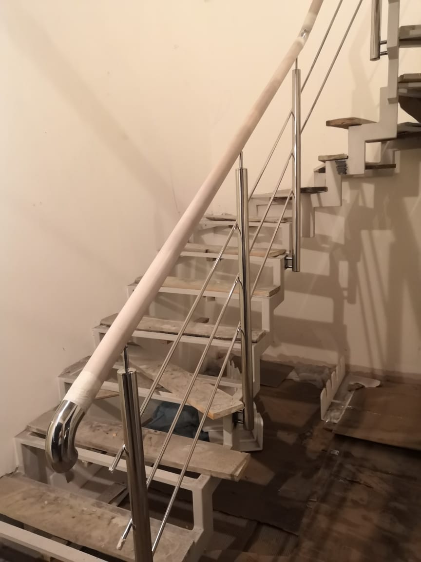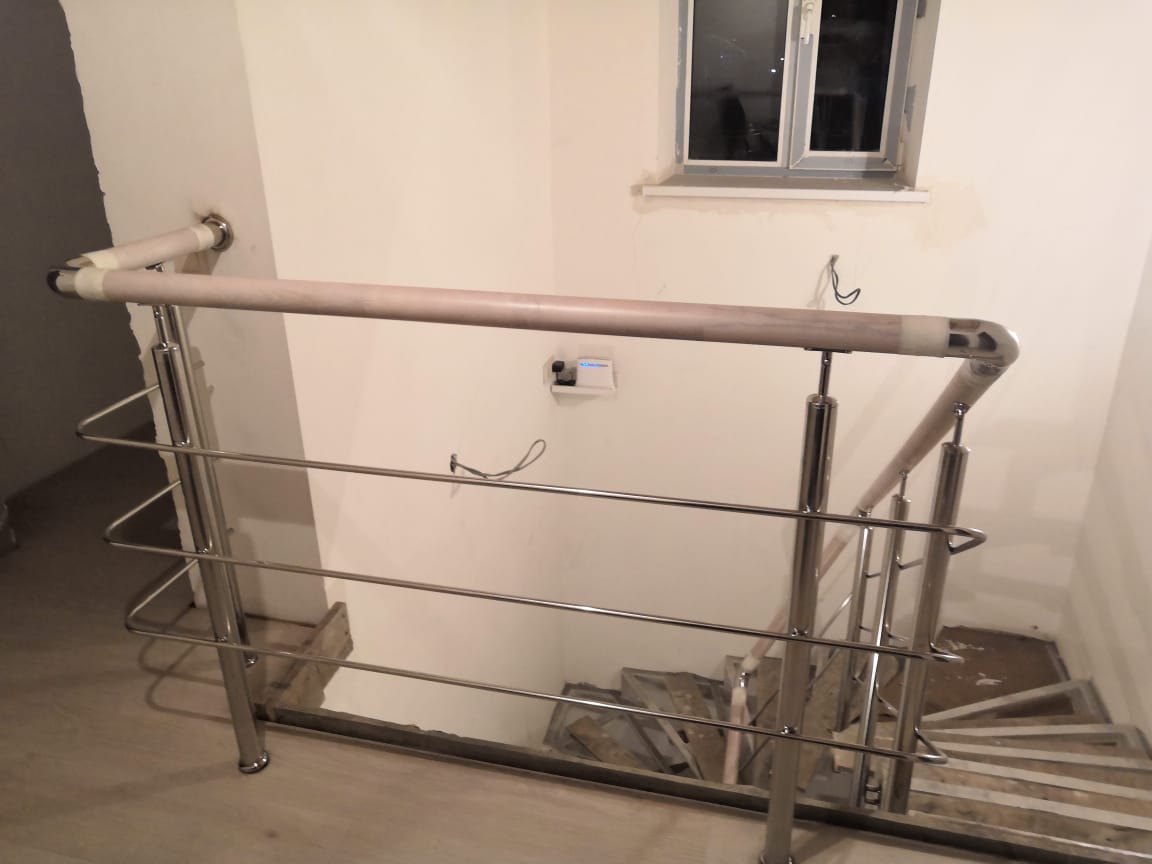 Выполнены работы по установке комбинированных ограждений. Поручень - бук, стойки в вставками из бука. Ограждения смонтированы с помощью декоративной фурнитуры.