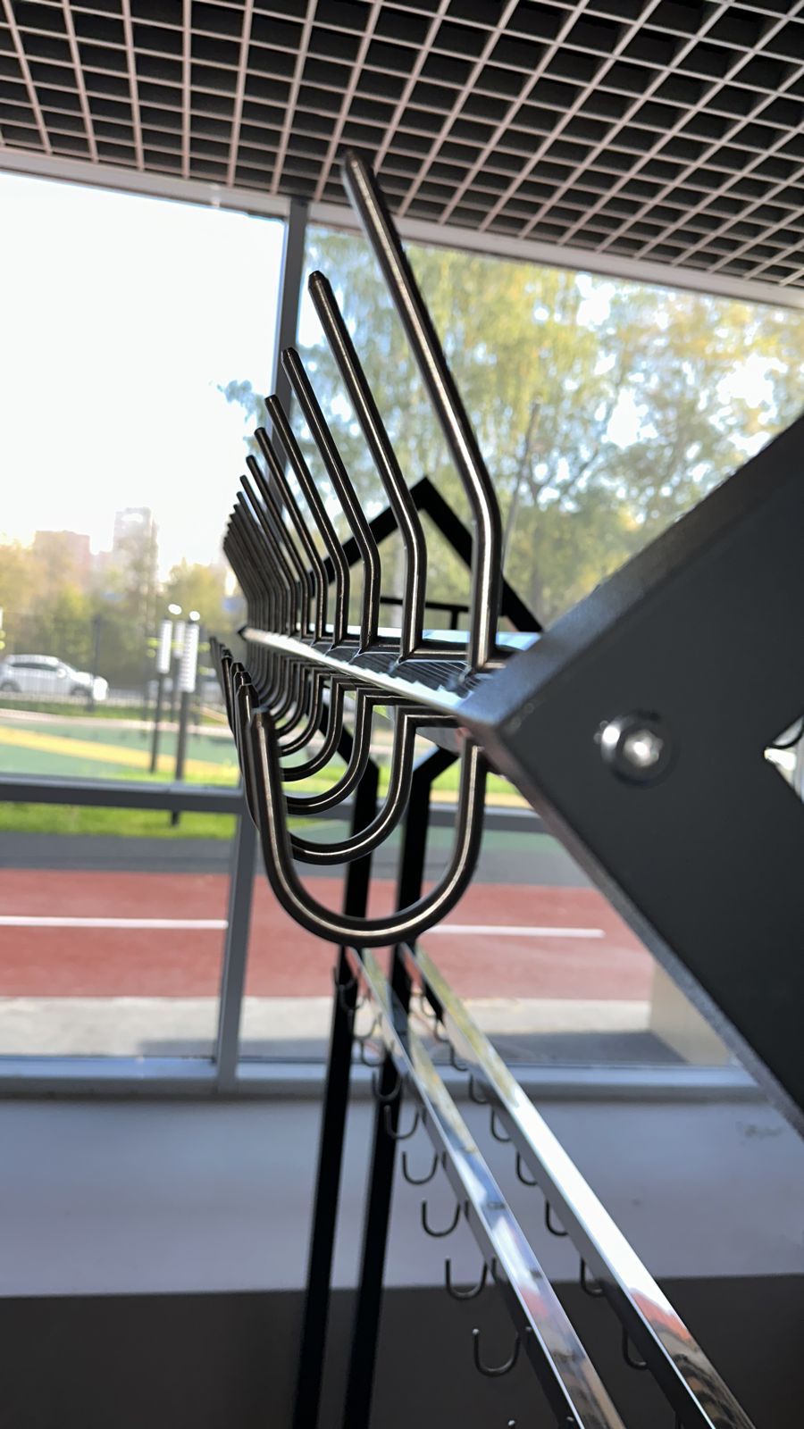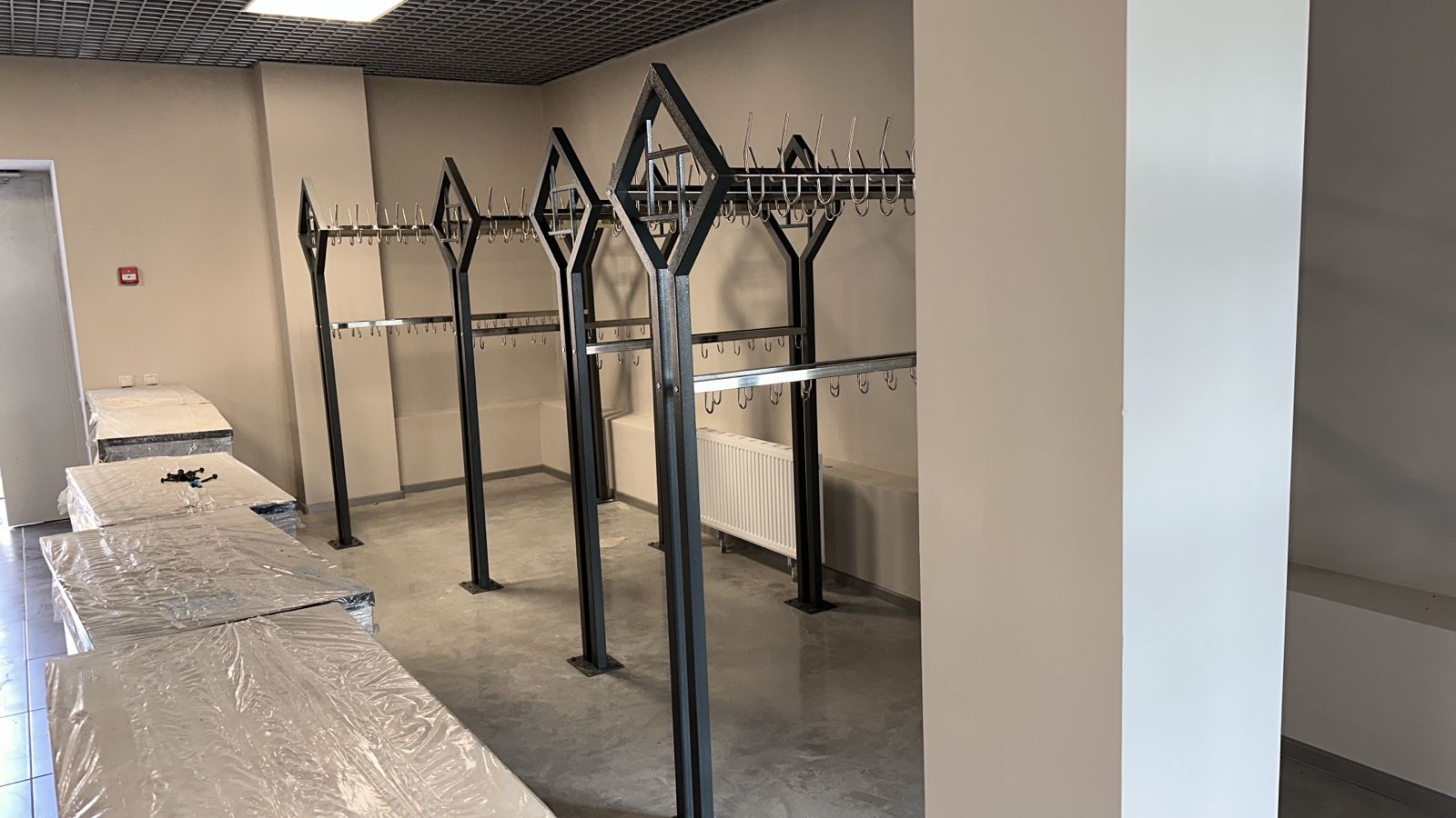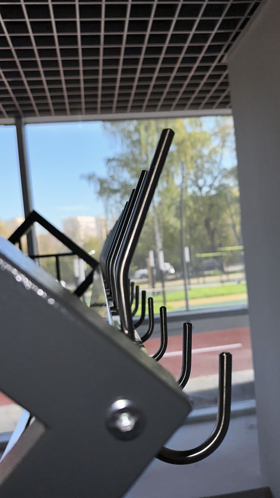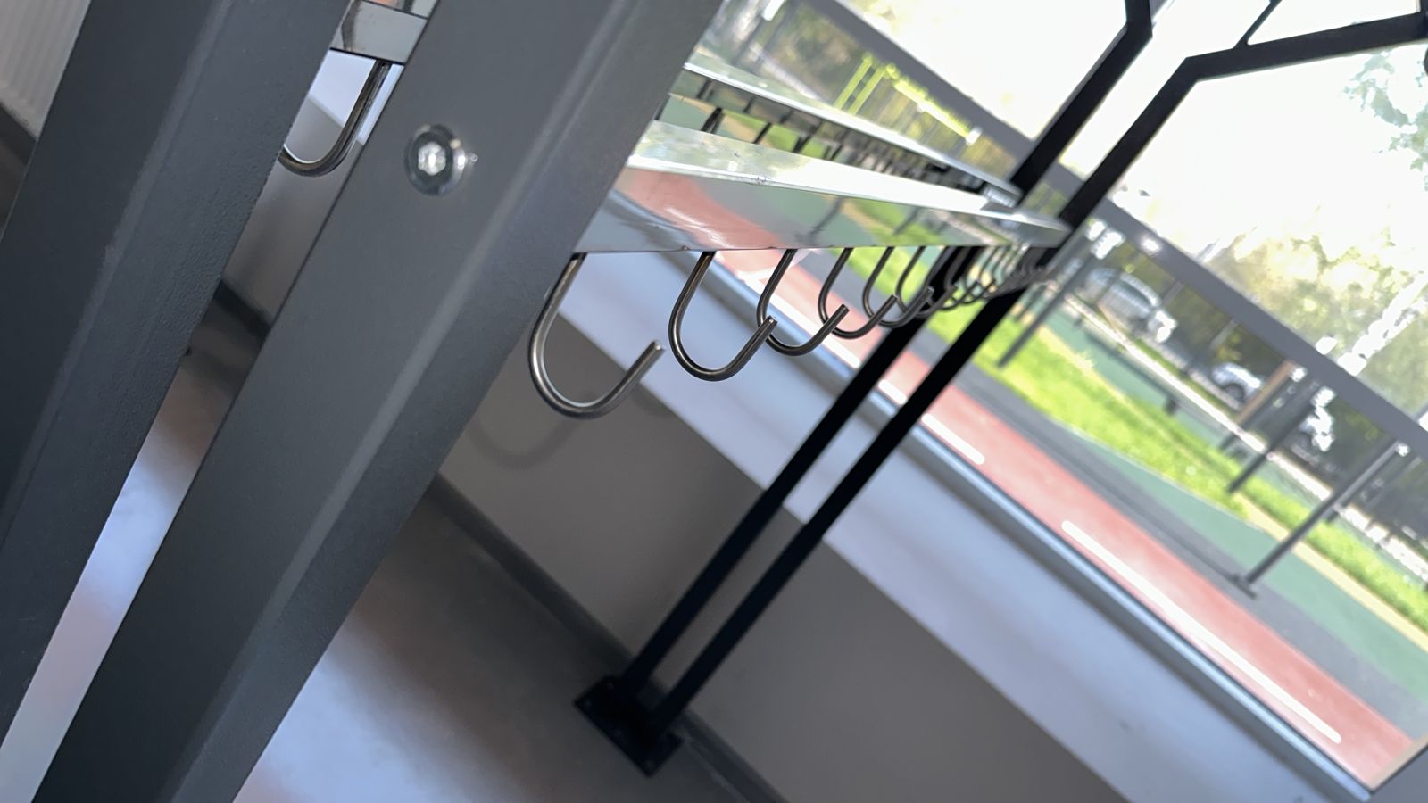 Наша компания поучаствовала в реконструкции физкультурно-оздоровительном комплекса "Спартак" в городе Пермь. Работы были выполнены по индивидуальному проекту. Было укомплектовано 3 помещения. Гардеробные секции выполнены из черного металла с перемычками из нержавеющей стали. На стойках реализован дизайн зоны выдачи. Секция вешалок оборудована двумя рядами (верхний и нижний) крючков. Крючки, расположенные в верхнем ряду позволяют разместить головной убор и предмет верхней одежды. Крючки, расположенные в нижнем ряду, позволяют разместить сумку с обувью. Материал крючков – гладкий прут из нержавеющей стали диаметром верх 8мм., низ - 5 мм.