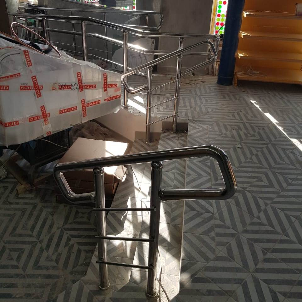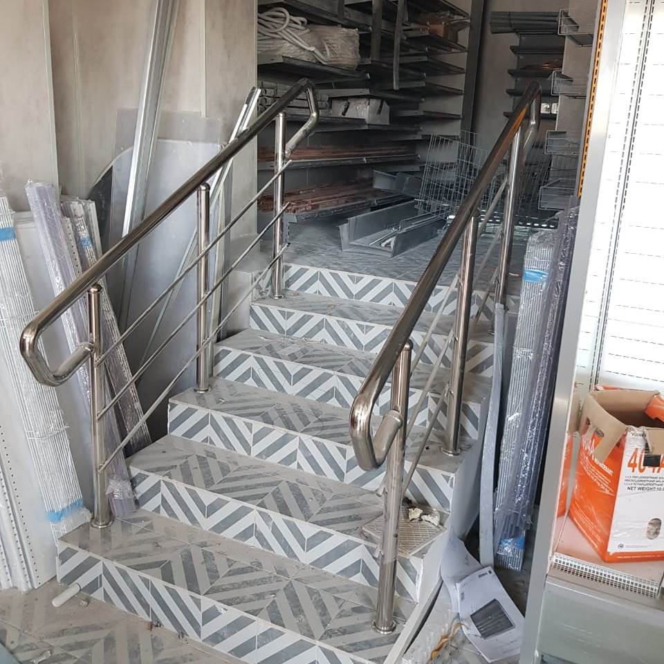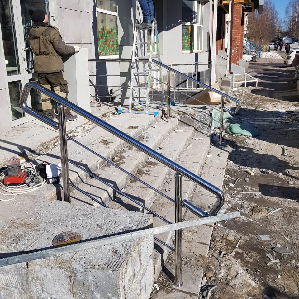 Помимо ограждений для крыльца и пандуса на входе в магазин, мы сделали ограждения для лестницы и пандуса внутри помещения.