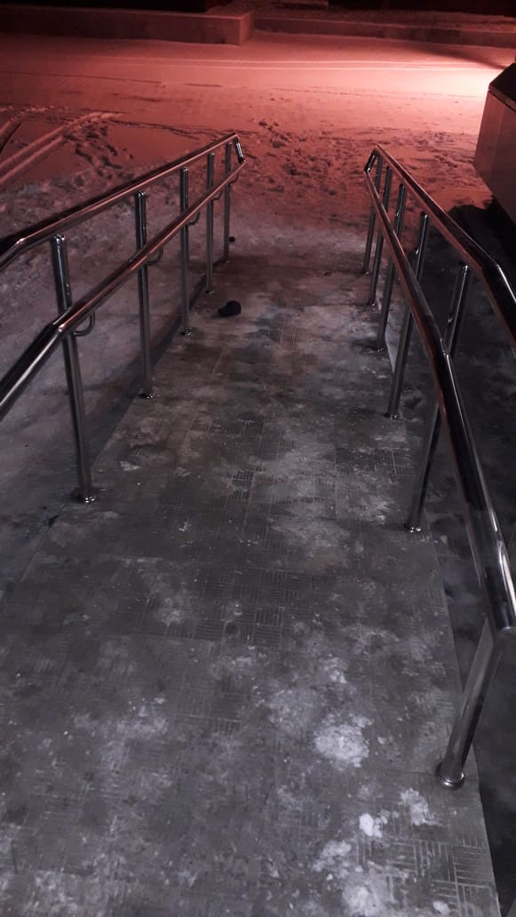 Выполнены работы по установке и монтажу ограждения крыльца с пандусом.
