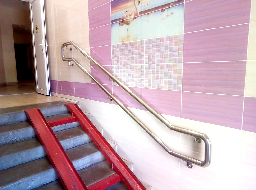 Выполнены работы по установке ограждения на пандус и пристенного поручня на лестничный марш. Московская обл, г. Щелково, ул. Центральная