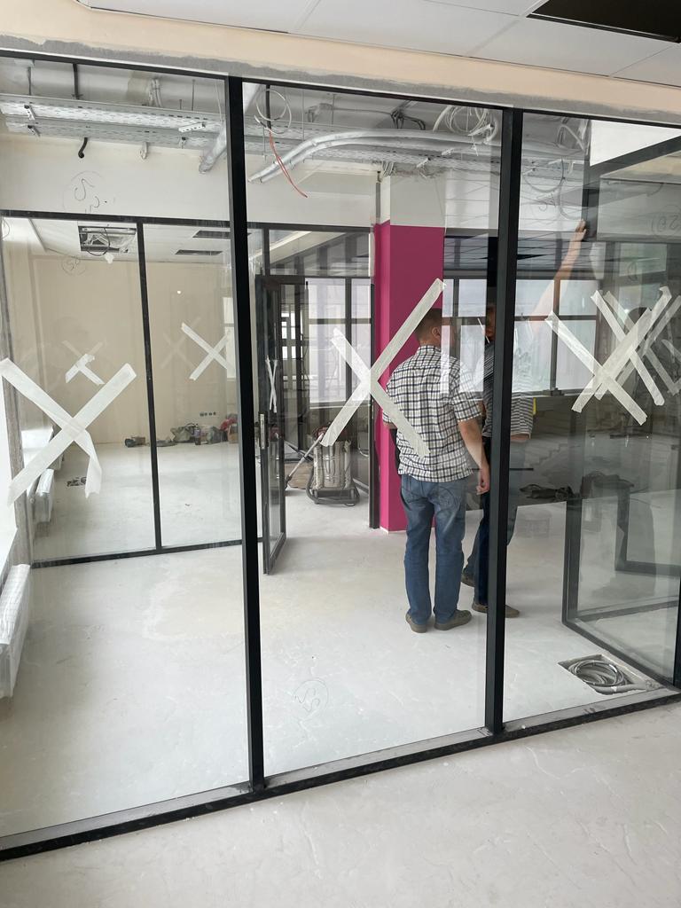 Изготовлены и смонтированы мобильные офисные перегородки из стекла.
