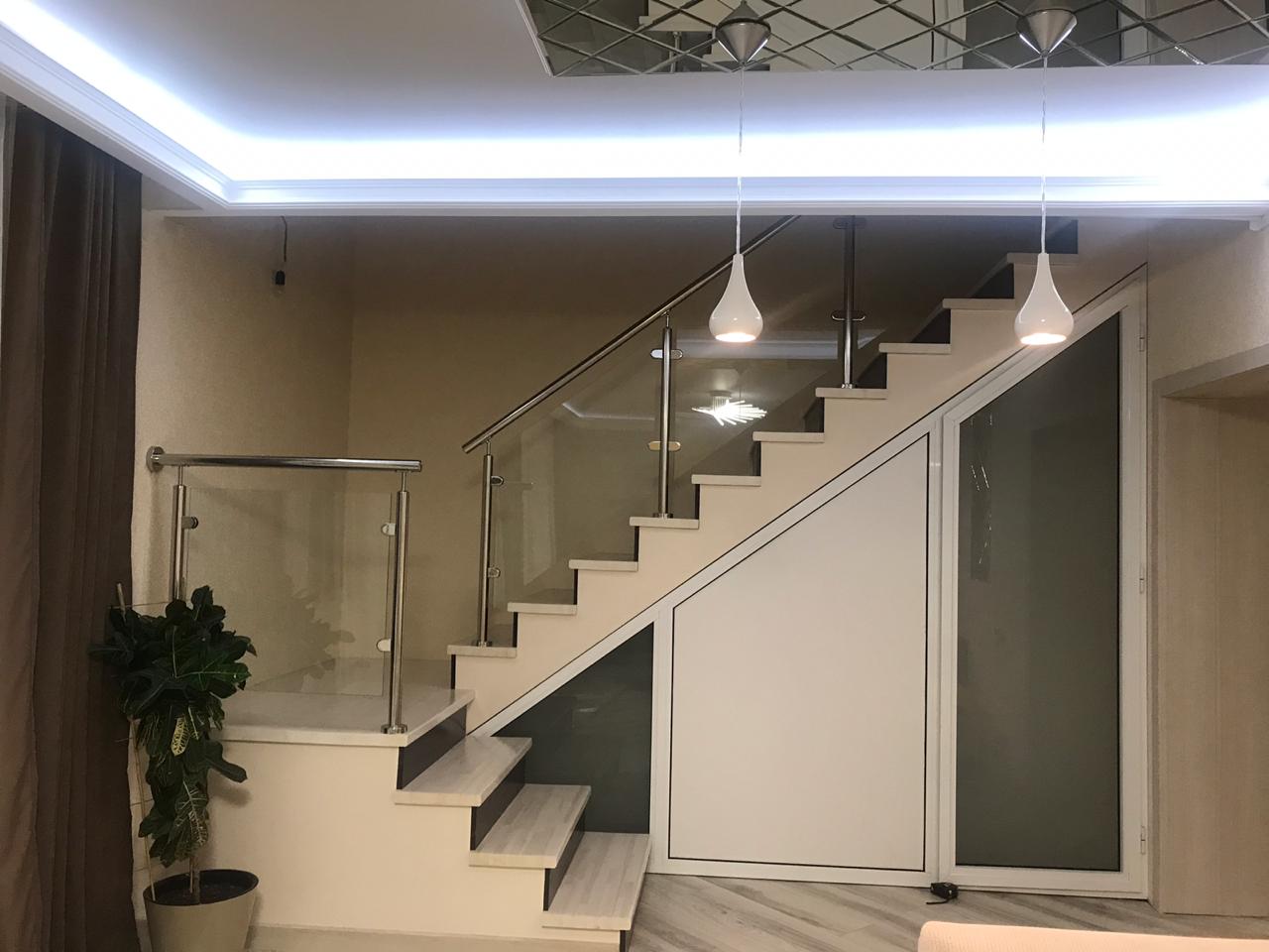 Изготовление и монтаж перегородки под лестничный марш. Заказчику захотелось закрыть лестничный марш и сделать кладовую.