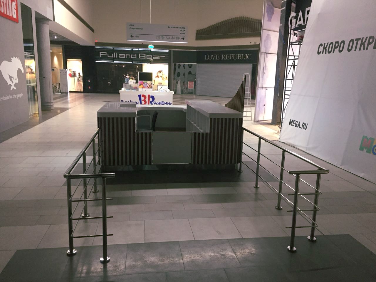 Особенность работы в Торговом центре "Мега" - это выполнение всех монтажных работ, после 22 часов вечера.
